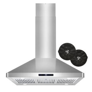 Elevate your kitchen decor to new heights. Cosmo’s COS-668AS900 wall mount range hood features a stainless steel body with a tempered glass visor. Heavy duty stainless steel permanent filters are dishwasher-safe for easy clean-up. 380 cu. ft. per minute suction traps smoke and fumes from disturbing your home. This wall mount range hoods glass visor also captures smoke and steam, ensuring it doesn’t escape into your home. LED lighting is available for added visibility. Touch controls make using our wall mount range hood easy. Part of the Vista Collection bringing enhanced functionality and design, offering a well-rounded option for those looking for more convenience and style in an appliance.