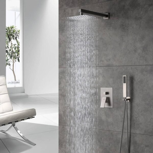 The main body of this brushed nickel wall-mounted rain shower system is made of brass. The square showerhead is made of stainless steel and has a high-end appearance and long-lasting durability. The CUPC-certified valve, stainless steel hand shower with a 59-inch hose, and 18-inch shower arm provide an advanced shower experience that washes away all-day fatigue.