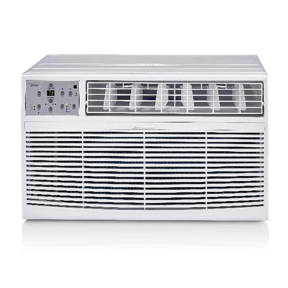 The Midea 12,000 BTU Through The Wall Air Conditioner provides an electric snap-cool of spaces up to 550 sq. ft. The fully functional and easy-to-use remote control allows you to set the comfort level of your choice, precisely controlling the temperature and fan speed from anywhere within range. A 24-hour timer also allows you to set start and stop times when you want, for the cool you want. Efficient to keep your room at the perfect temperature.