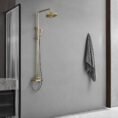 2-Spray Outdoor Wall Bar Shower Kit 8 in. Round Rain Shower Head with Hand Shower and 2 Cross Knobs in Antique