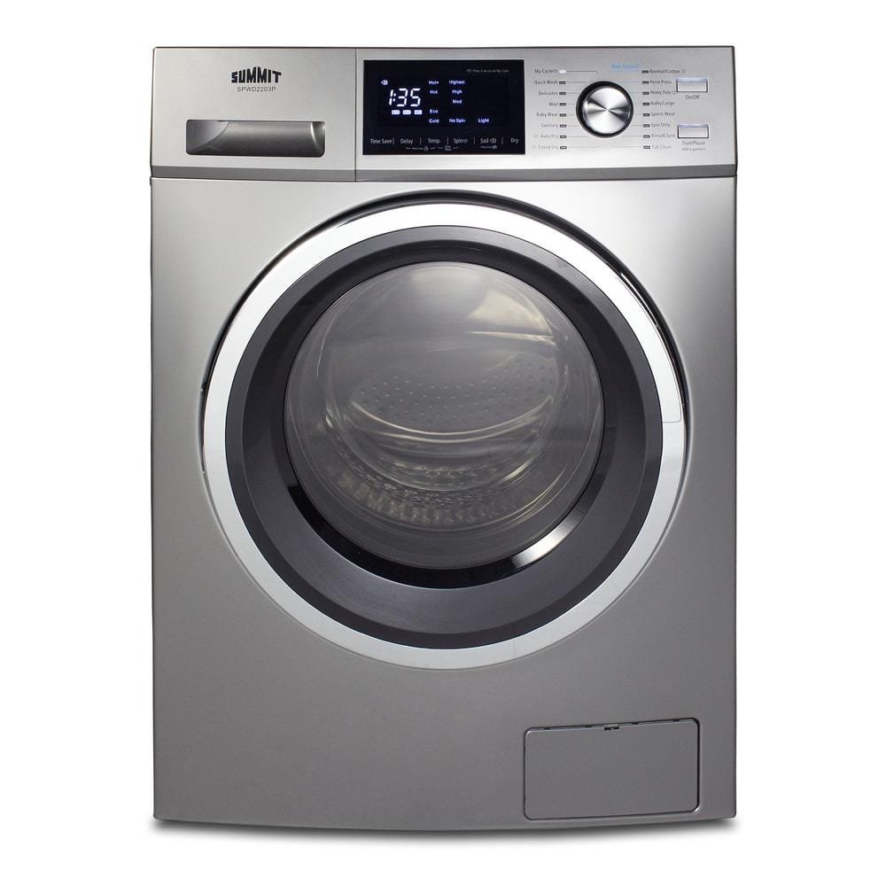 The Summit 2.7 cu. ft. All-in-One Washer and Electric Ventless Dryer maximizes laundry capacity to get the job done faster. It comes in an attractive platinum gray finish that brings a modern look to any smaller living space. This non-vented 110-Volt washer/dryer includes a stainless steel drum with a full 2 cu. ft. capacity enabling the unit to wash select loads of up to 15.4 lbs. and dry up to 7.7 lbs. The front-loading design features a large, easy-to-open glass door and pullout dispenser for detergent, pre-wash and fabric softener. A combination digital and dial control panel with a large LCD readout makes it easy and intuitive to operate this unit. 12 wash programs ensure all fabrics receive the proper treatment, with specialized settings for duvets, sportswear, wool, delicate and heavy-duty loads. A sanitize cycle allows the washer to use higher temperatures for smaller loads, while a quick setting is ideal for washing small loads in less time. The delay, pause and Add Garment functions allow more flexibility in washing. Five spin speeds vary from 400 to 1200 RPM to allow the user to select the proper setting per load. This unit offers the choice of four temperature settings and three soil levels, as well as a memory function (My Cycle) for added convenience.