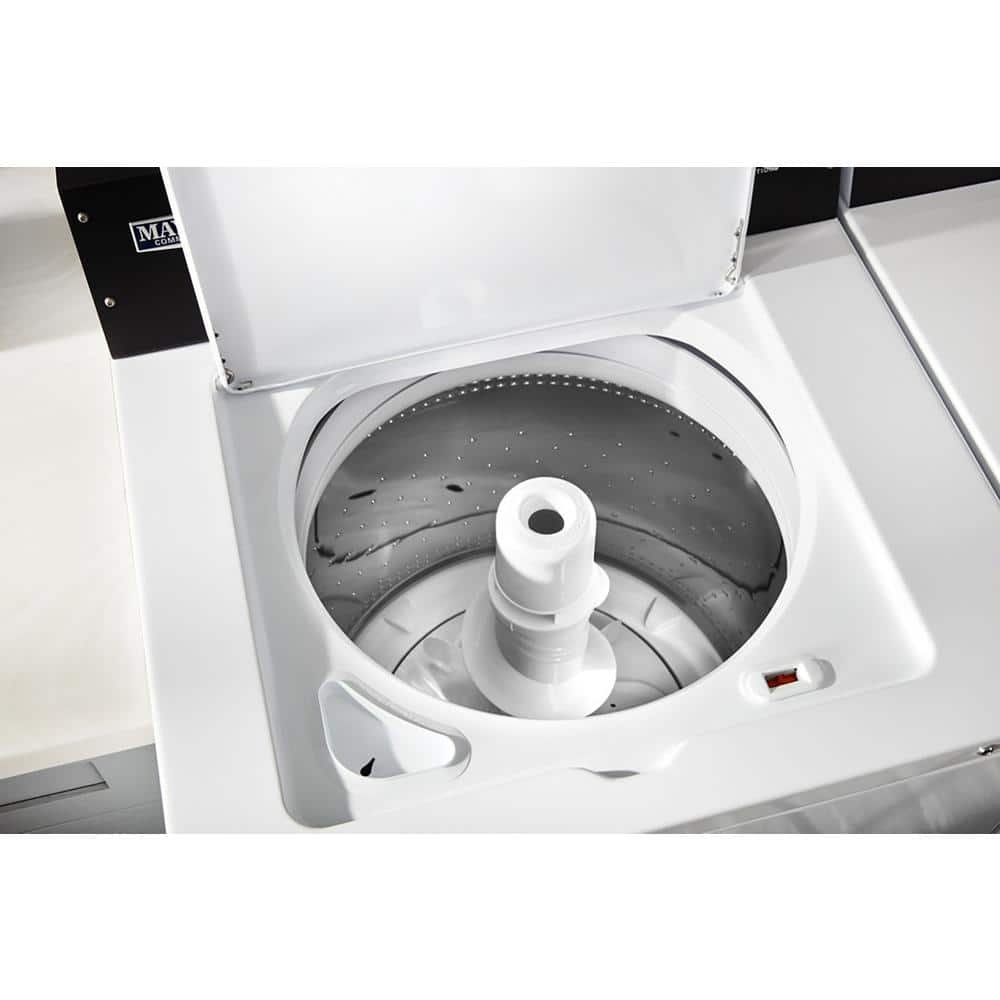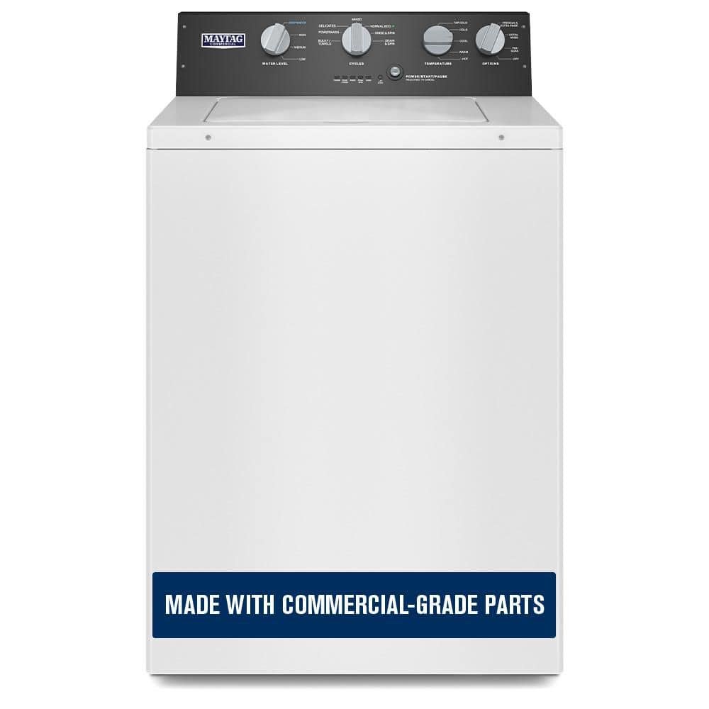 This commercial-grade Maytag washer brings rugged durability and high-grade performance to the home laundry room. This washer features a robust build and a dual-action agitator, surrounded by thick, galvanized steel panelling engineered to take a beating and resist corrosion. As a top load washing machine with manual water level control, you can get the water you desire.
