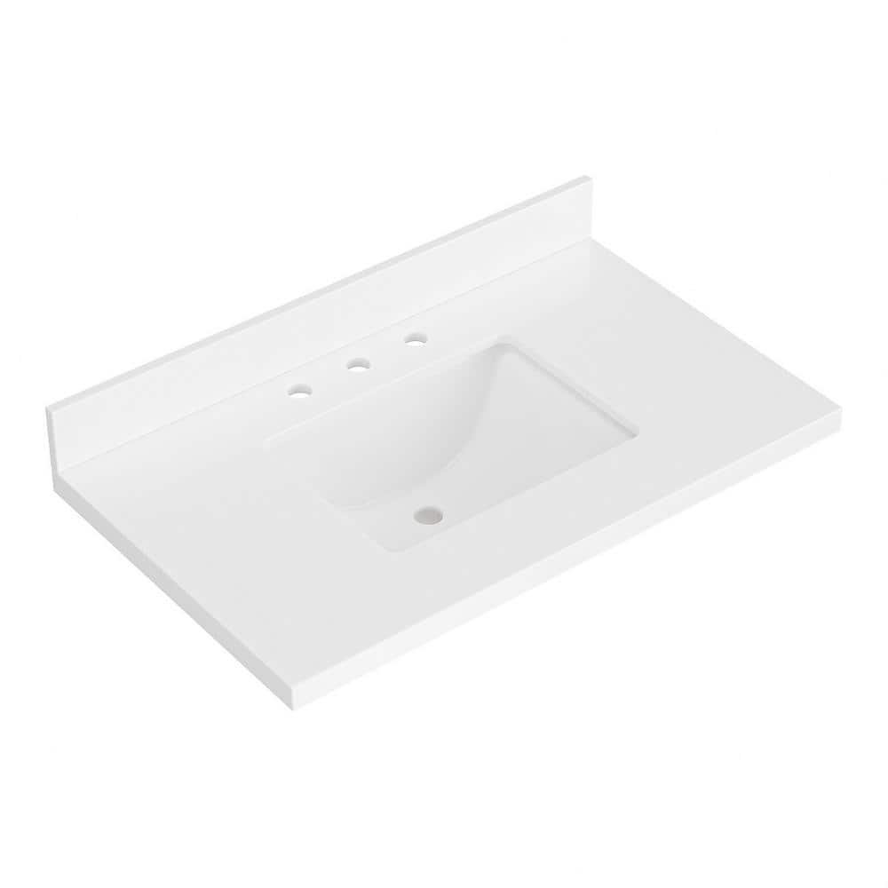 36 in. W x 22 in. D in Pure White Quartz with 1.5 in. Thick Miter Edge with Rectangle Single Sink Vanity Top in White