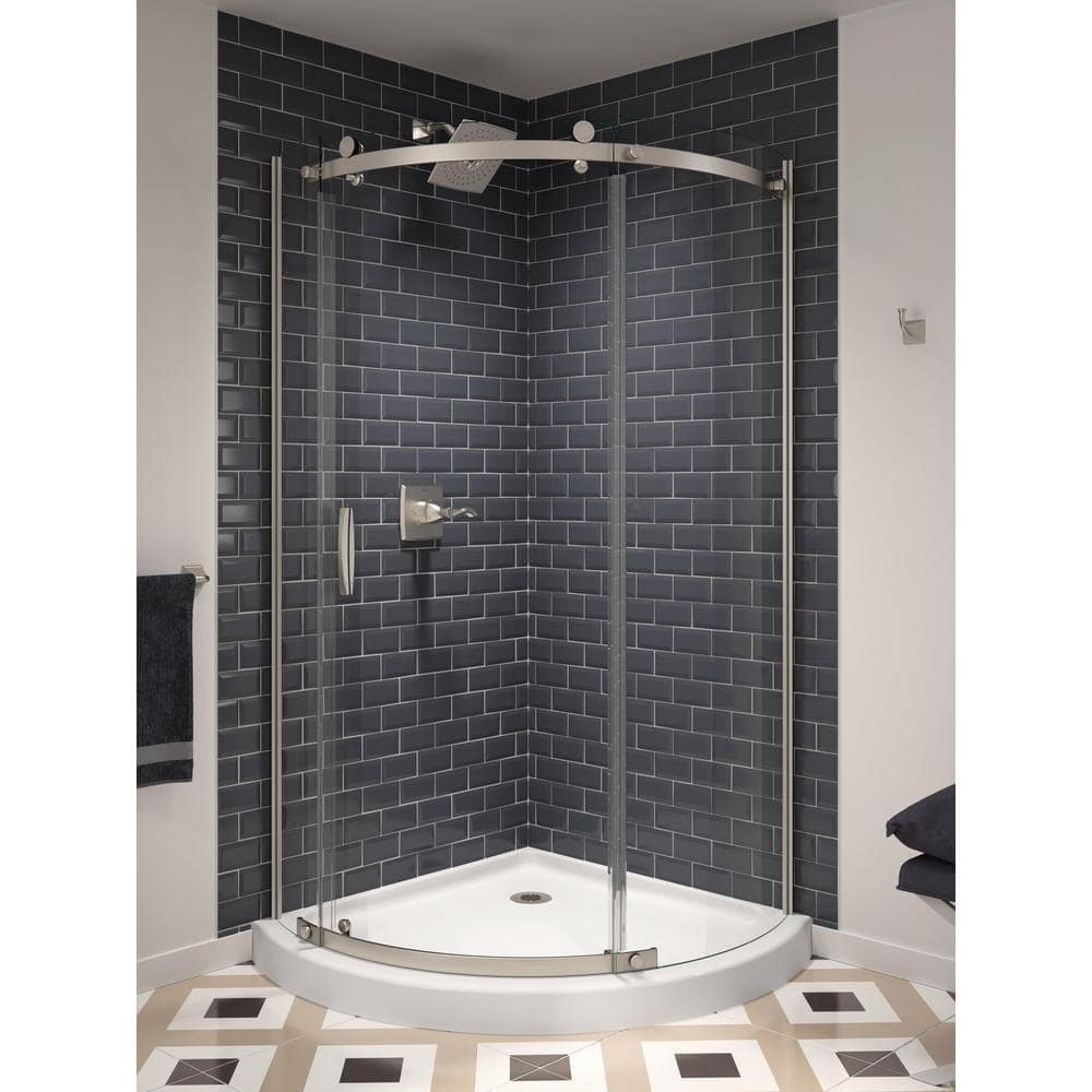 The 38 in. x 38 in. Single Threshold Shower Base in White from Delta has a premium high-gloss, nonporous acrylic surface that is durable and easy to clean. This shower base offers strength with built-in, reinforced support and doesn’t sacrifice style or design. It has a corner drain design and is the perfect size to fit in a small bath. Designed to pair with Delta 37-1/2 in. x 72 in. Frameless Corner Sliding Shower Door from Delta, which comes in chrome and stainless finish options.