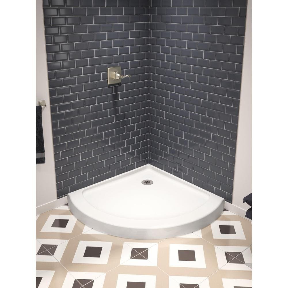 38 in. x 38 in. Round Corner Shower Pan Base with Corner Drain in White