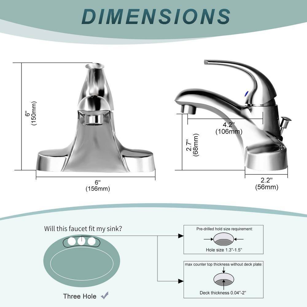 This bathroom faucet fit standard 4 in. installation. Classic faucet comes with lift rod and pop up stopper. Special finish surface can resist fingerprint and corrosion. The handle is easy to move to control the volume and temperature.