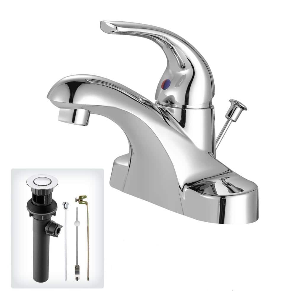 4 in. Centerset Single-Handle Mid Arc Bathroom Sink Faucet with Drain Kit Included in Chrome