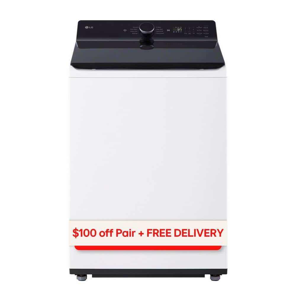 LG makes laundry easier with a modern update of the familiar top load washer. Mega capacity handles more clothes in every load, paired with TurboWash3D technology that delivers a powerful clean in less time than ever. With the ThinQ app, you can get alerts on your smartphone the minute clothes are clean, and control key washer features from anywhere, at any time. And with Smart Pairing, the washer can even tell the dryer to select a compatible drying cycle, making it the ultimate laundry hack.