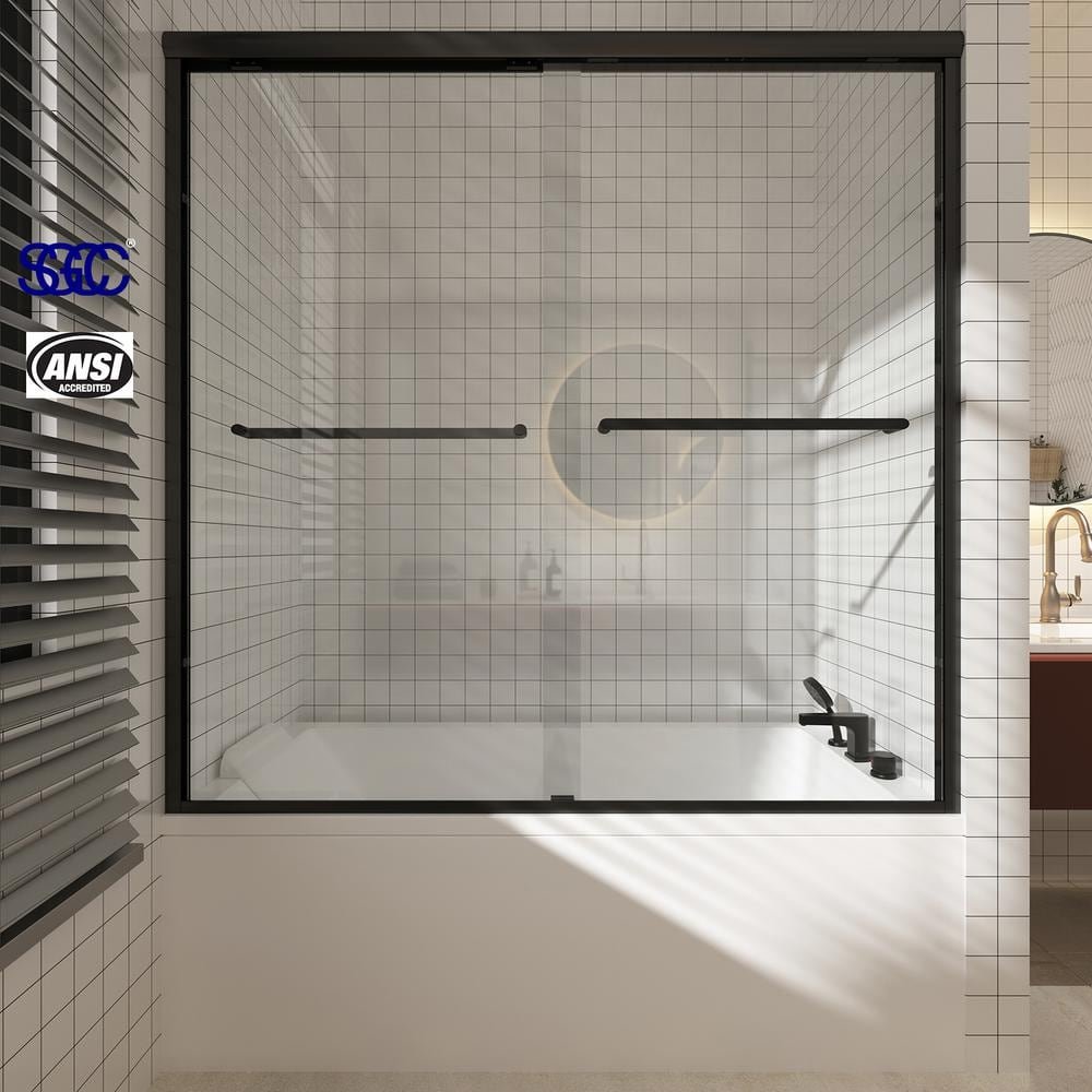 56 to 60 in. W x 58 in. H Sliding Framed Tub Door in Matte Black with Clear Glass