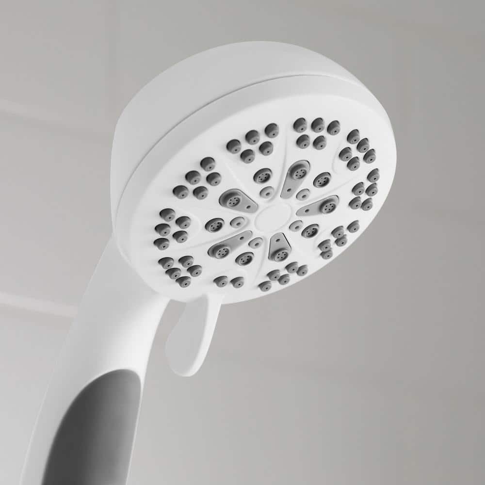 This 6 Spray Handheld Hand Shower offers an excellent styling choice at an affordable price. This kit includes a hand shower, 60 in. PVC hose and a shower arm mount. Available in white.