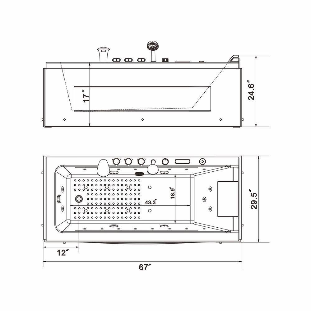 The Empava 67 in. Jetted Air Whirlpool tub is perfect for those looking for a strong deep tissue massage to soothe sore muscles and joints or to reduce stress. The 9 water jets and 8 air jets provide from the gentle, soothing bubbles to the stronger, high-pressure massage option. Our hydrotherapy and chromatherapy systems work together to create a soothing experience. Drop-in or 3-wall alcove installation for flexibility.