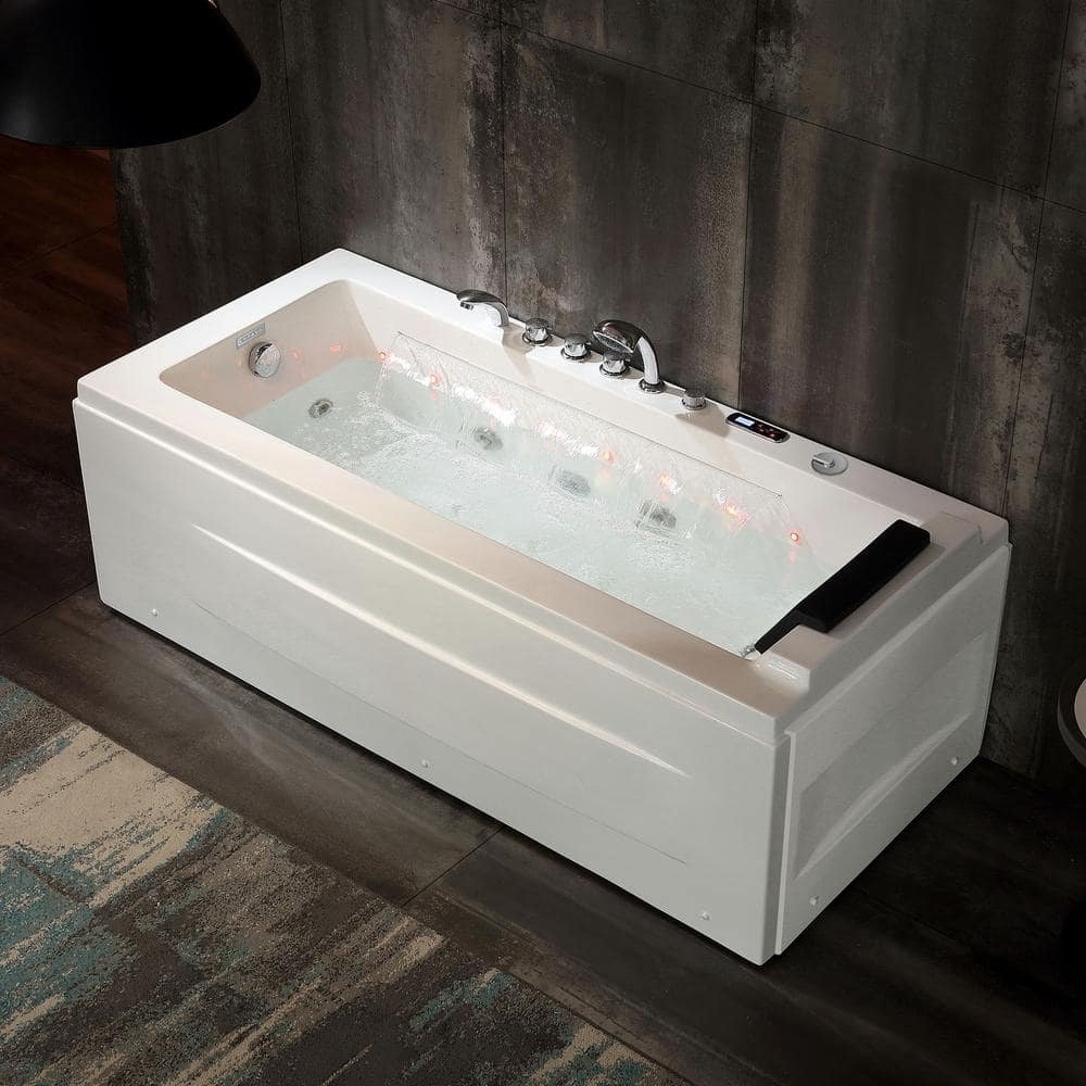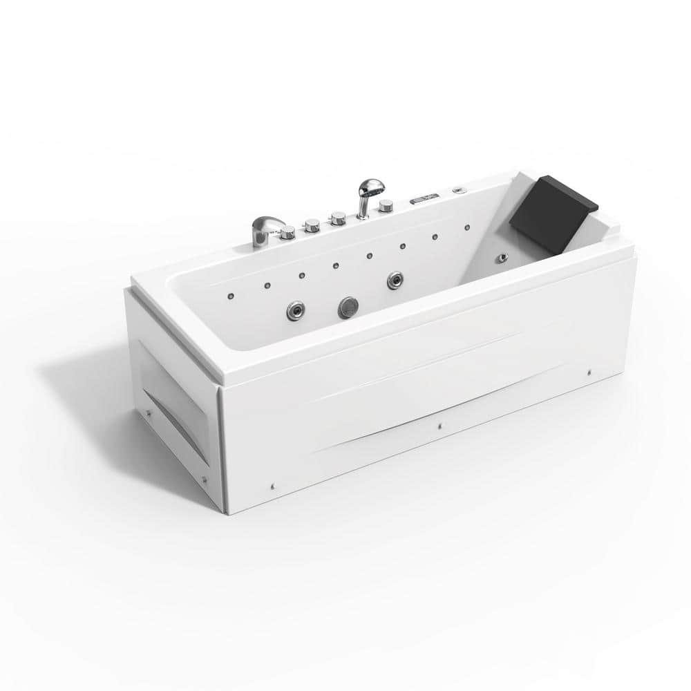 67 in. Left Drain Rectangular Alcove Whirlpool Lighted Bathtub in White with Water Jets – Tub Filler – Hand Shower