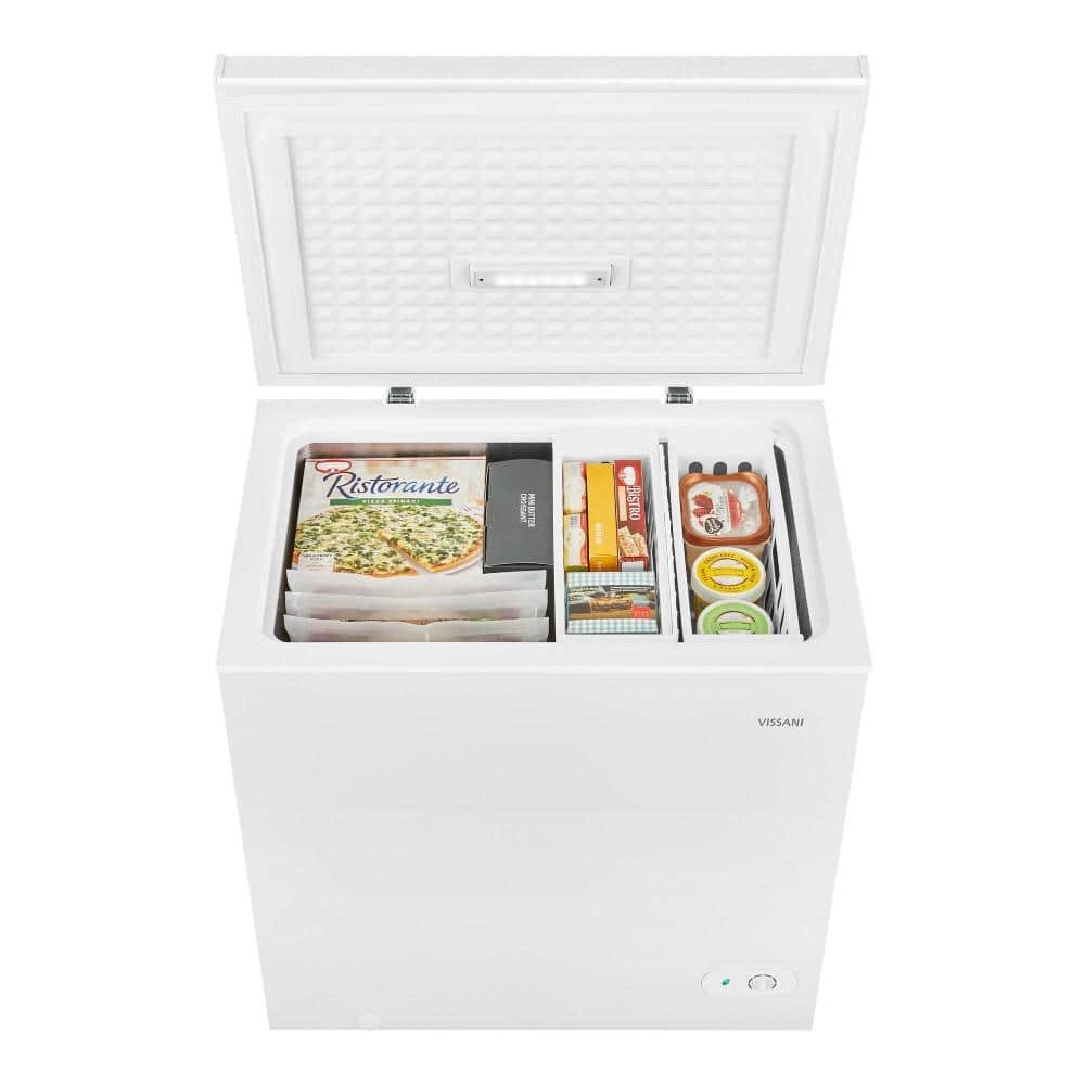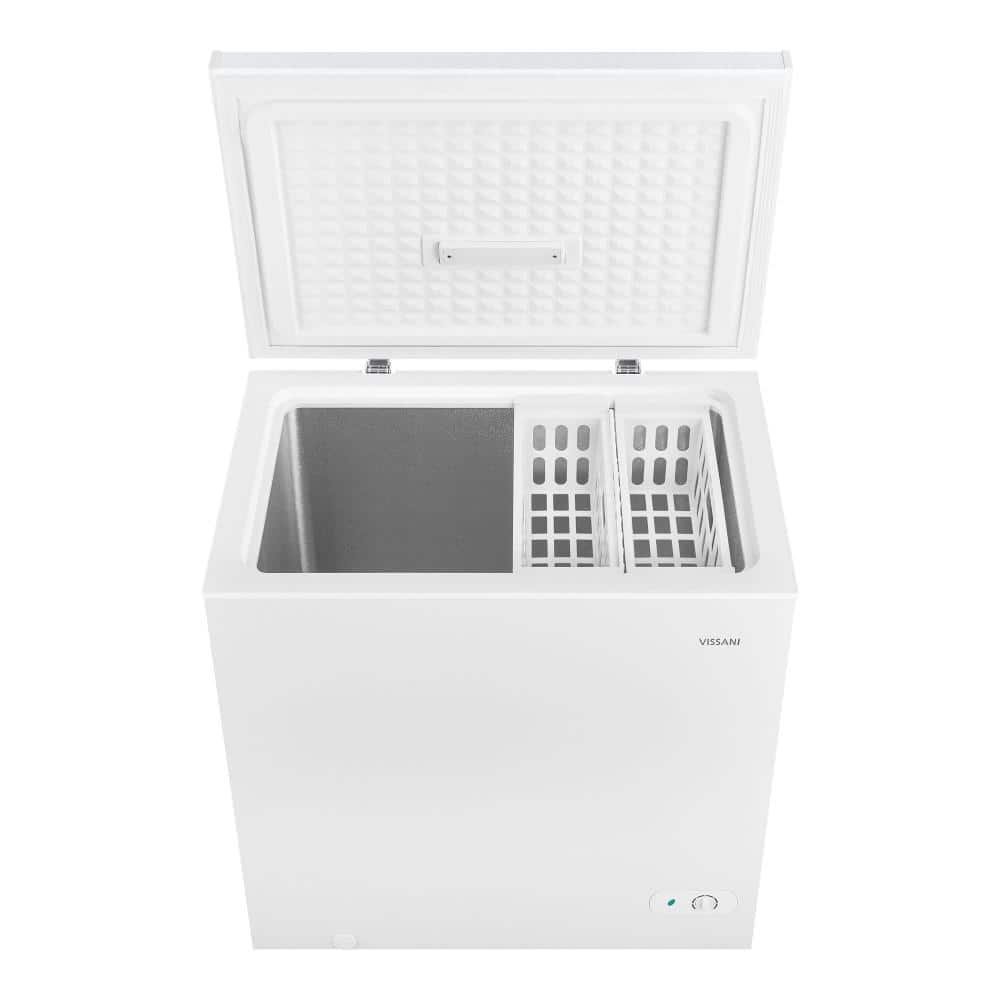 Bring freshness to your life with the garage ready VISSANI 7.0 cu. ft. chest freezer. With the freezer’s interior LED light, you can easily find your frozen foods. This product is tested to perform indoors from 0В°F to 110В°F as well as 500 hour salt spray test for corrosion protection and contains UV protectant which preserves the exterior finish. There are also many convenient features such as exterior adjustable thermostat, power indicator light, easy to clean interior, convenient drain plug, and removable storage basket for easy access and organization.