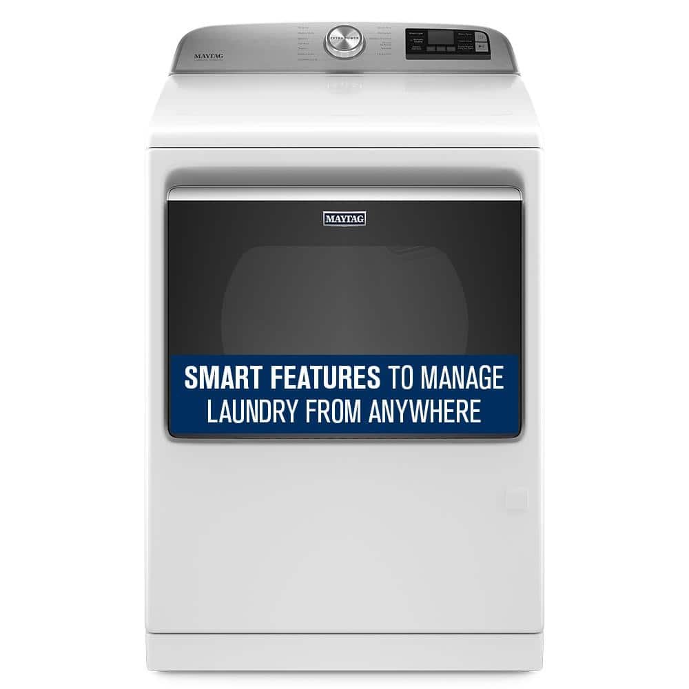 Extra Power boosts drying power to get thick fabrics drier the first time.* Advanced Moisture Sensing monitors inside moisture and air temperatures to help evenly dry loads. Steam-enhanced cycles and options help prevent wrinkles, refresh clothes and reduce static. Dry a small load fast with the Quick Dry cycle, which pairs nicely with the Quick Wash cycle on select Maytag washers to get clothes ready in no time. Smart features help you stay in control and efficiently manage laundry from anywhere.** Use the Maytag app to remotely start or stop your appliance and get end of cycle notifications so no load is left behind. Plus, troubleshoot select issues to avoid unnecessary service calls.