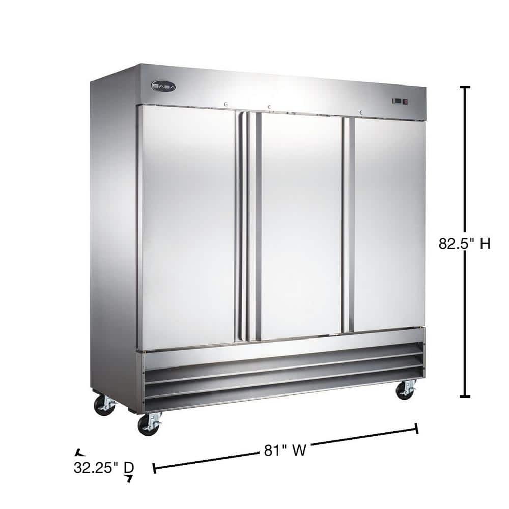 72.0 cu. ft. Three Door Commercial Reach In Upright Freezer in Stainless Steel
