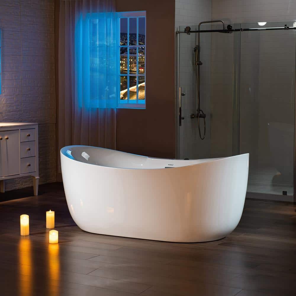 72 in. x 35 in. Acrylic Freestanding Whirlpool and Air Combination Heated Bathtub w/Drain and Overflow Included in White