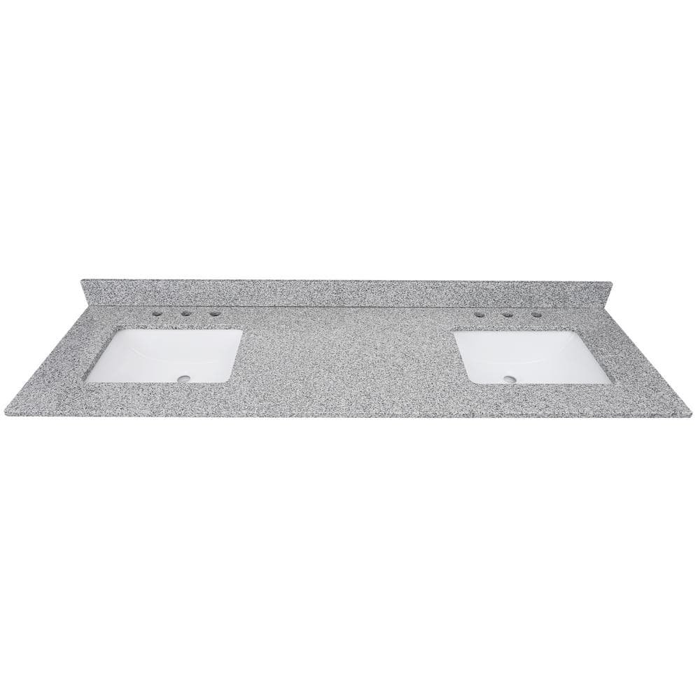 73 in. W x 22 in D Granite White Rectangular Double Sink Vanity Top in Gray