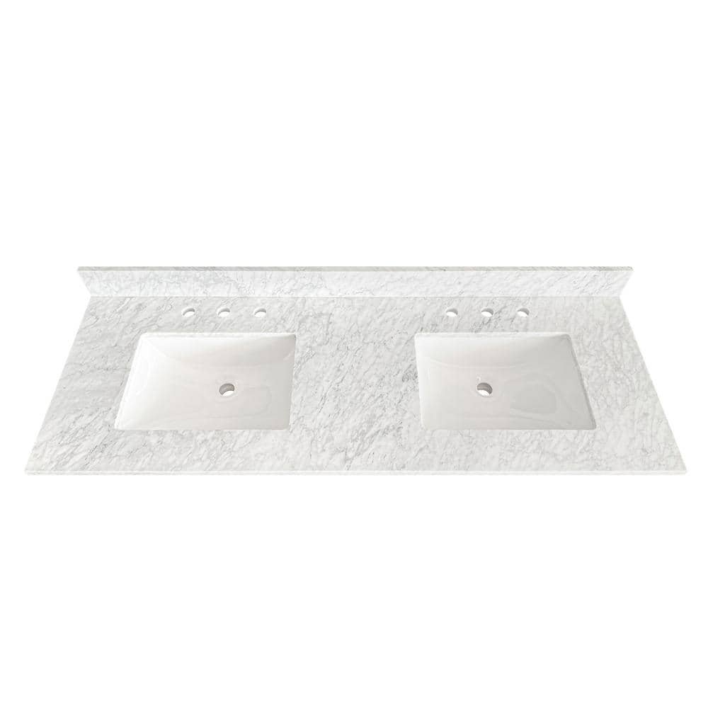 73 in. W x 22 in D Marble White Rectangular Double Sink Vanity Top in Carrara Marble