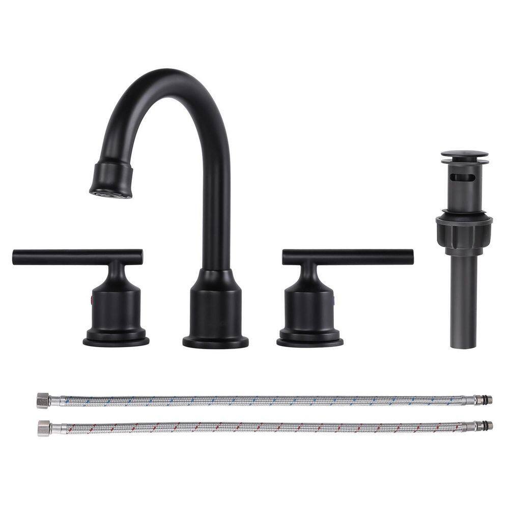 8 in. Widespread Stainless Steel Double Handle Bathroom Faucet with Pop Up Drain and Supply Hoses in Matte Black