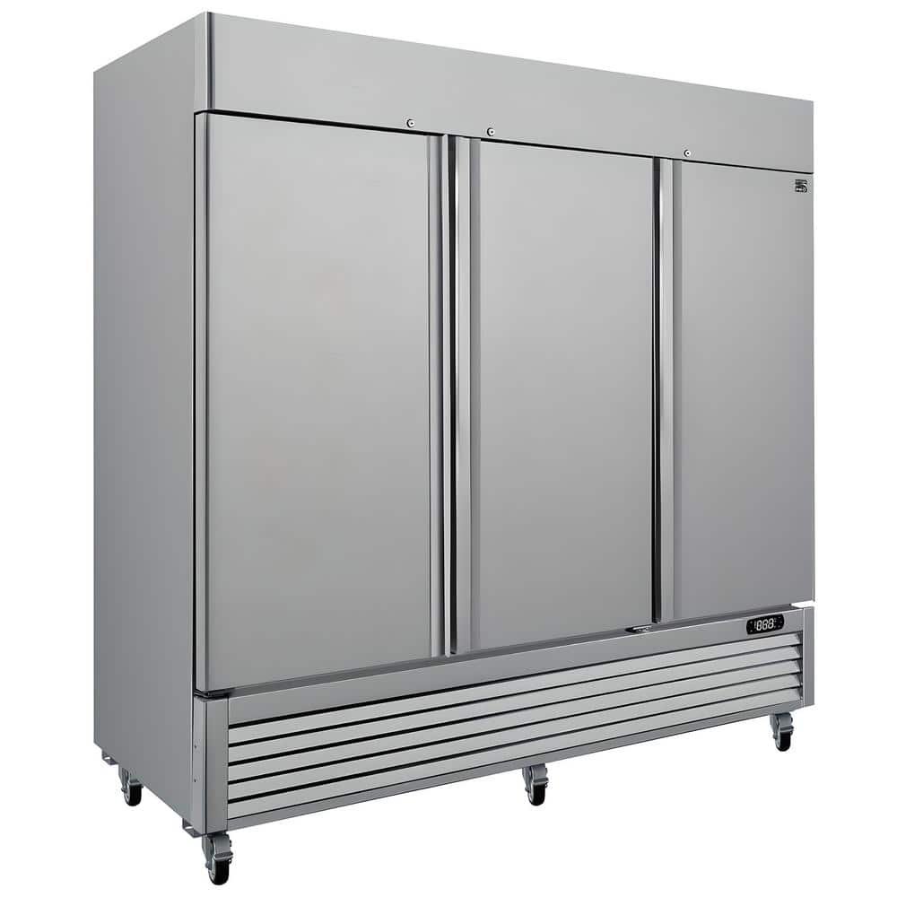 72 cu. Ft. Stainless steel 3-door reach-in freezer is ideal for commercial venues like restaurants and hotels. Convertible design adapts to your food storage needs. Digital controls and adjustable shelves ensure precise storage conditions.
