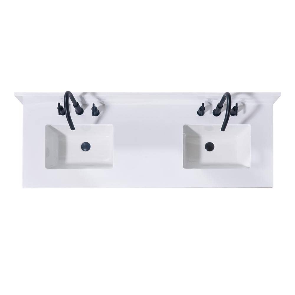 Andalo 61 in. W x 22 in. D Engineered Stone Composite Vanity Top in Snow White with White Rectangular Double Sink
