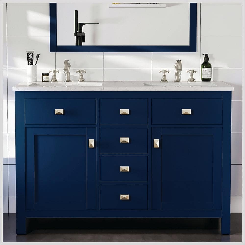 Artemis 48 in. Double Sink Blue Bath Vanity with White Engineered Top (Assembled)