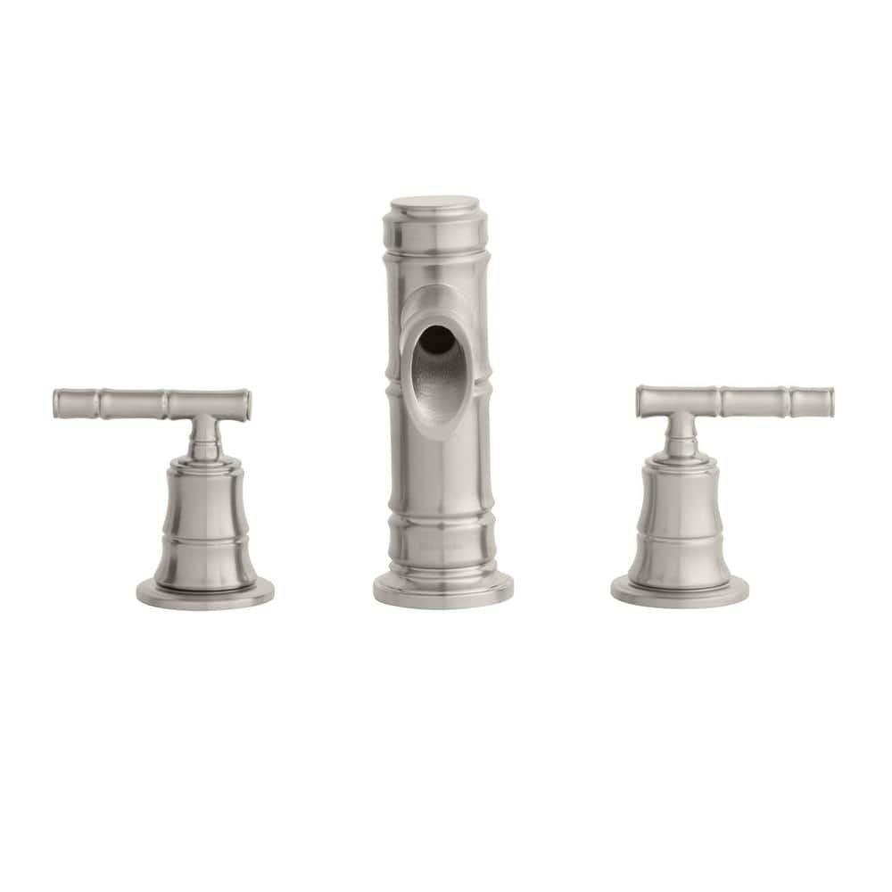 The Glacier Bay Bamboo 8 in. Widespread 2-Handle Low-Arc Bathroom Faucet in Brushed Nickel features a nature-inspired design that adds a touch of tranquility to your bathroom. The 1.2 GPM water flow rate and WaterSense certification helps reduce water use. The ceramic disc cartridges help prevent drips to further conserve water. The 2-handle design and low-arc spout make the faucet easy to use, and the deck-plate mount makes it easy to install. This faucet also features the Glacier Bay exclusive ClickInstall drain assembly for quick and simple installation.