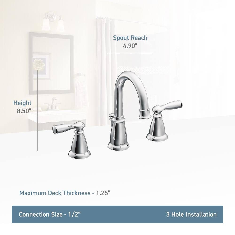 The Banbury Widespread 2-Handle High-Arc Bathroom Faucet from MOEN highlights a timeless nostalgia that complements both classic and modern styles. This WaterSense certified design delivers 1.2 GPM, using up to 32% less water than traditional faucets while still providing the same great performance you expect. Pair with other pieces from the Banbury collection for a complementary theme throughout your bathroom.