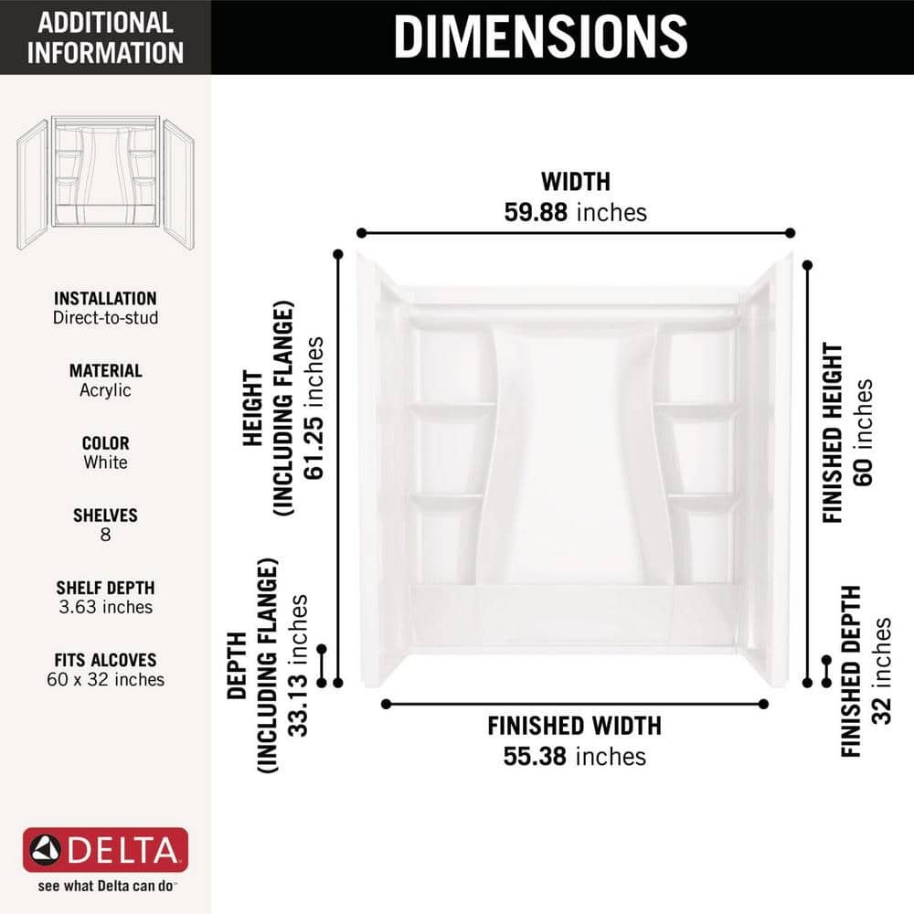 Classic 500 60 in. W x 61.25 in. H x 32 in. D 3-Piece Direct-to-Stud Alcove Bathtub/Shower Surrounds in High Gloss White