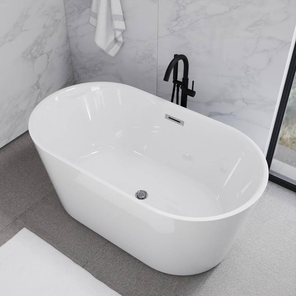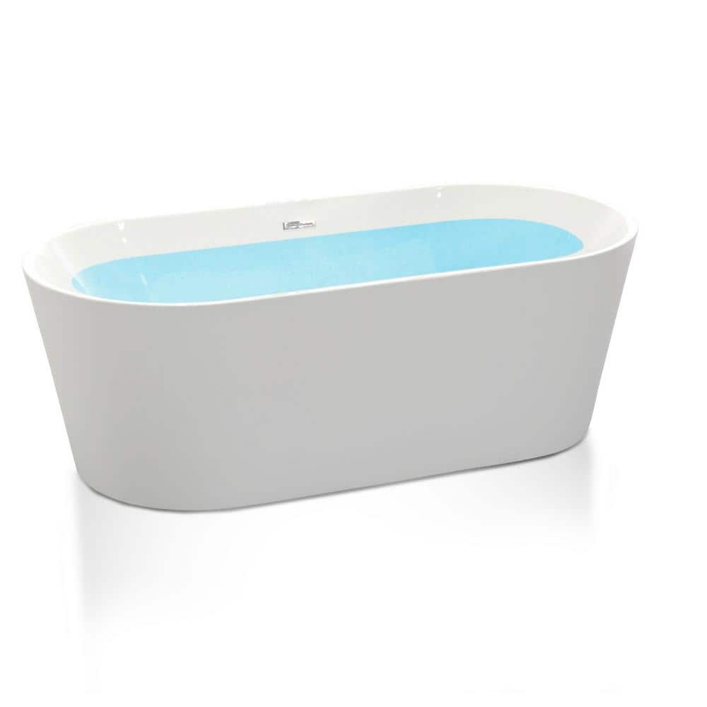 Conten 60 in. L x 30 in. W Acrylic Flatbottom Oval Freestanding Center Drain Soaking Bathtub in Glossy White