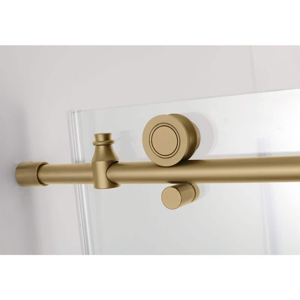 Coraline XL 44 in. – 48 in. x 36 in. x 80 in. Frameless Corner Sliding Shower Enclosure Clear Glass in Brushed Gold Left