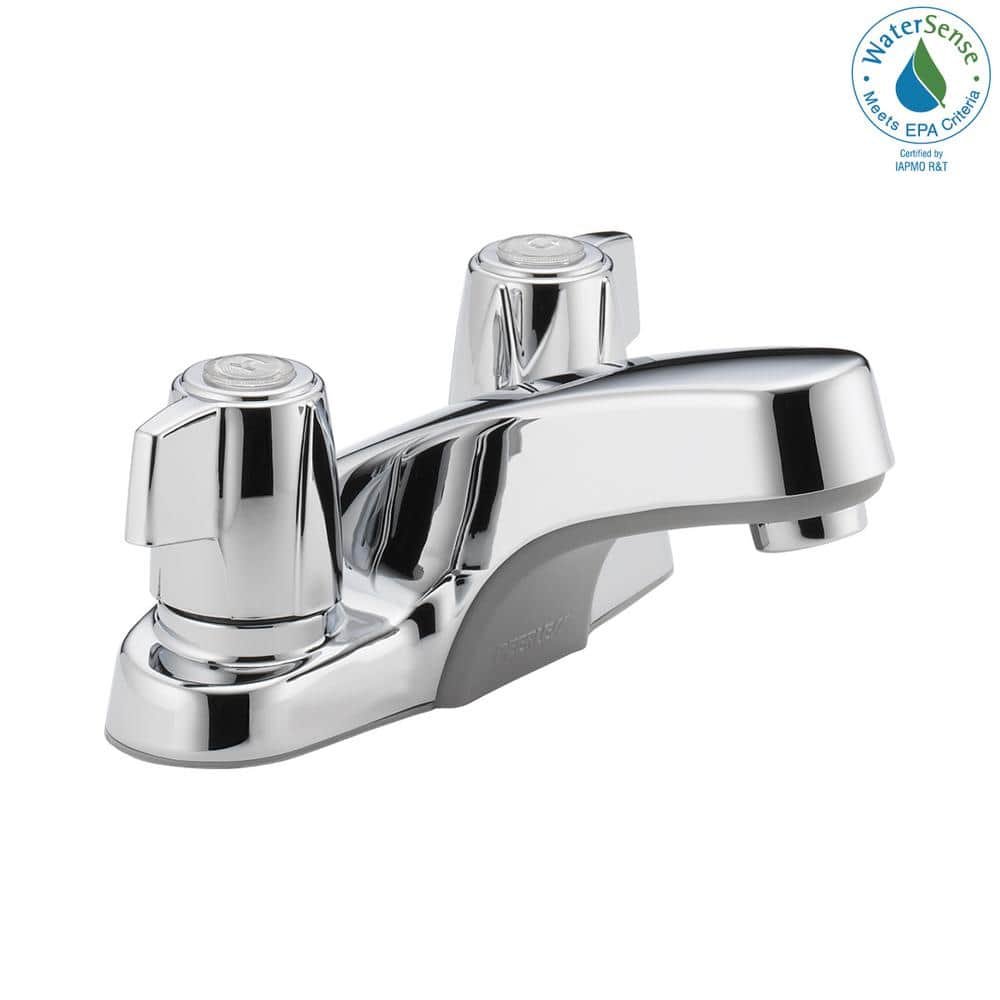 This 2-Handle 4 in. Bathroom Faucet in Chrome is an easy and affordable way to update the look of your bath. It’s simple design complements a variety of design styles. You can buy with confidence, knowing that Peerless backs this faucet with a lifetime limited warranty.
