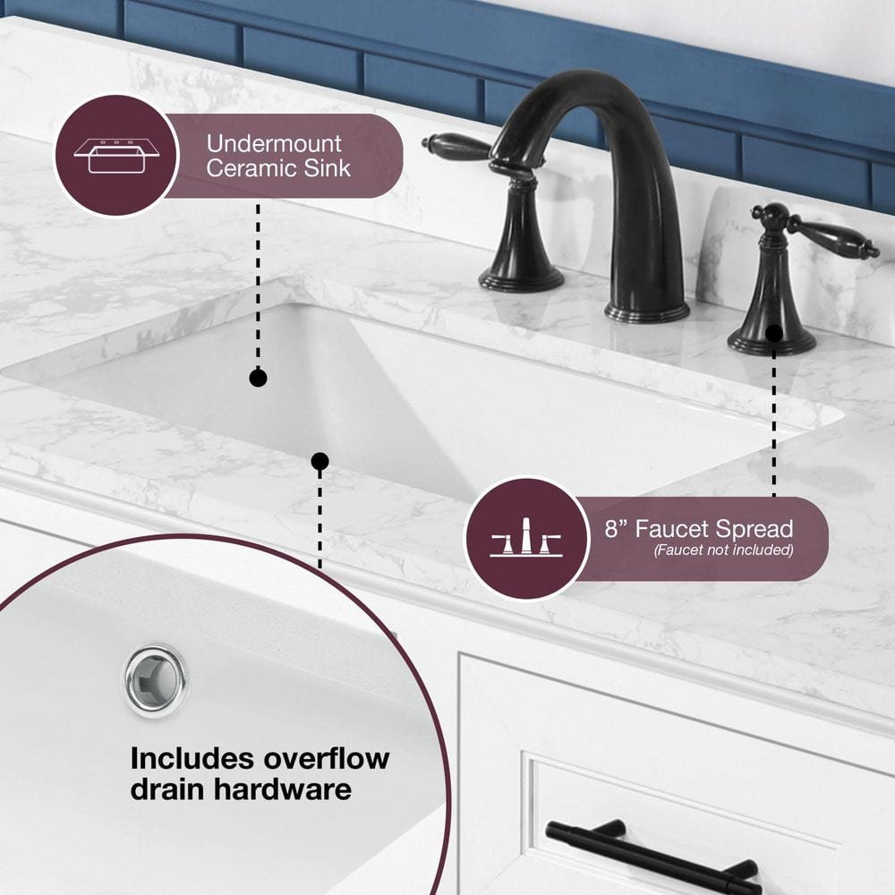 Doveton 48 in. Single Sink Freestanding White Bath Vanity with White Engineered Marble Top (Assembled)