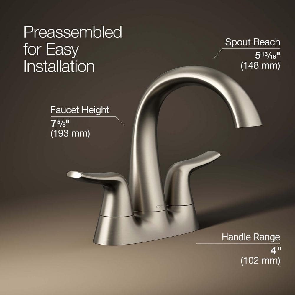Inspired by the gentle flow of water, the Easmor centerset bathroom sink faucet will bring a sense of calm to any space. The Easmor bathroom sink faucet has a transitional style with soft, pebble-inspired handles that complement its fluid form and allow for smooth operation, while ceramic disc valves offer a leak-free and drip-free experience. It has a lifetime limited warranty.