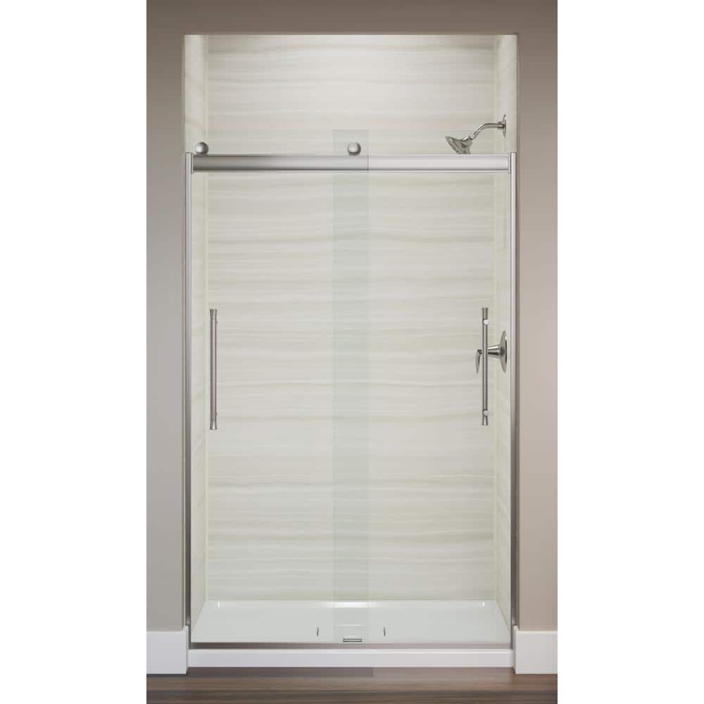Elmbrook 44-48 in. W x 74 in. H Sliding Frameless Shower Door in Anodized Brushed Nickel with Crystal Clear Glass