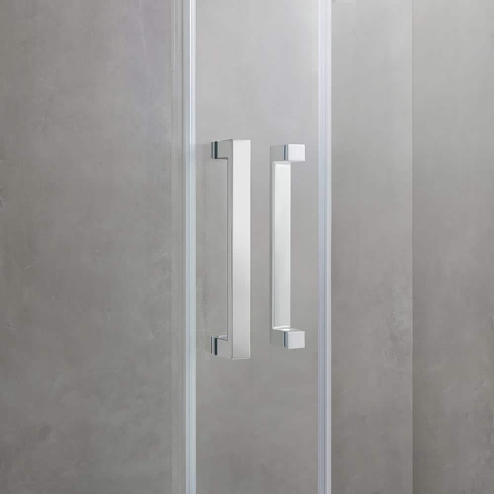 The Home Decorators Collection Elsie frameless alcove sliding door features stylish chrome handles and hardware to add a touch of modern style to any bathroom project. Made with 8mm (5/16″) thick certified tempered glass, these doors are strong enough to stand up to daily use. For added convenience, its bypass design means the doors open on both sides so you can enter your shower from the left or right. Your contractor will love how simple it is to install its adjustable, smooth-rolling panels and rail that deliver quiet and secure operation. Enjoy your shower doors’ great looks for a long time with a premium glass coating that resists soap scum and limescale buildup, keeping them easy to clean.