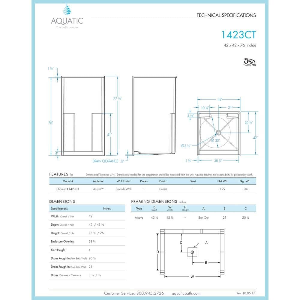 The versatility of our shower selection is simply inspiring, with a wide variety of sizes available, from 32 in. to 60 in. When it comes to style, you’ll find an array of tile-pattern and smooth wall finishes to choose from. This unit is crafted from an AcrylX applied -Acrylic finish reinforced with fiberglass. This unit has two integral shelves and a center drain.