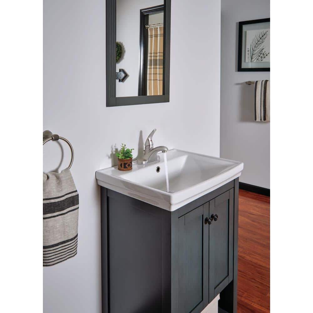 For an updated look or for new installation, consider the Foundations 4 in. 1-Handle Bathroom Faucet in Brushed Nickel. The faucet features a deck-plate mounting design and is installed in 3 holes with 4 in. on-center spacing. The single lever design makes the faucet easy to operate while the low-arc spout leaves plenty of room for washing hands. This environmentally-friendly faucet is WaterSense-certified to reduce water waste.