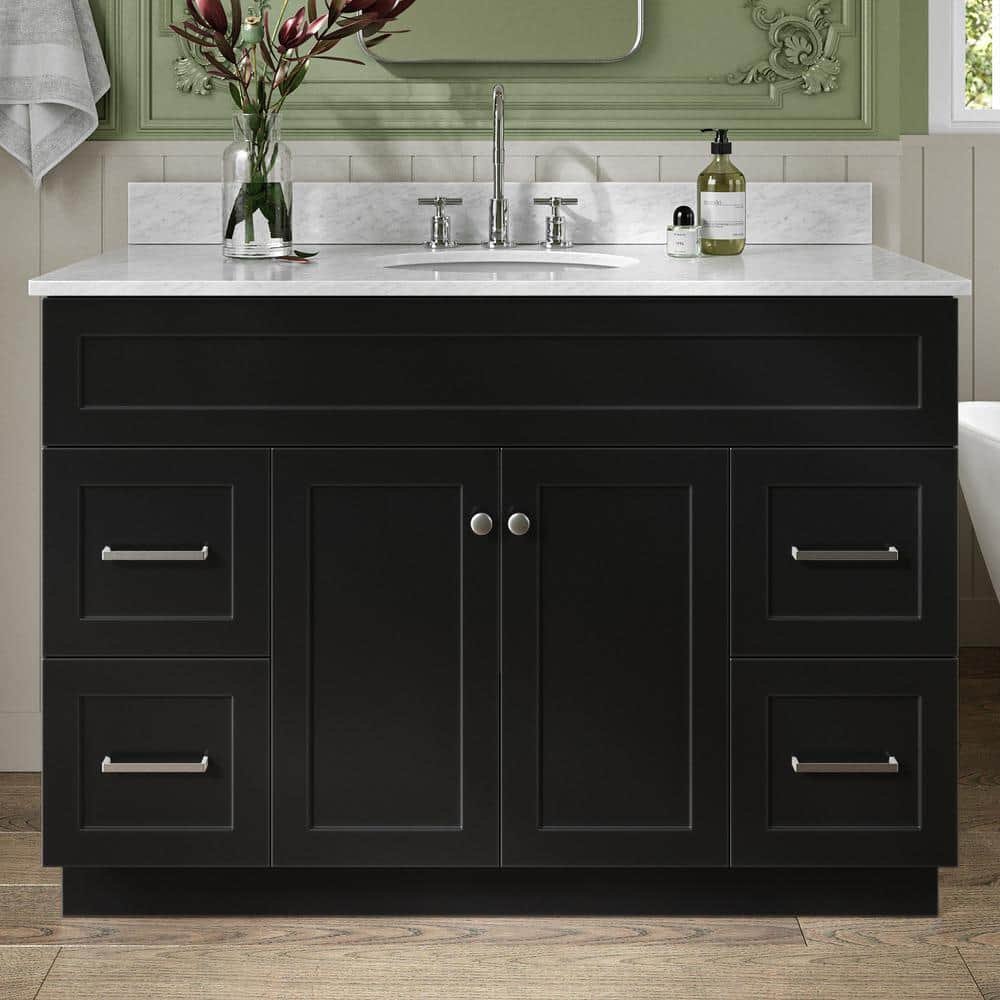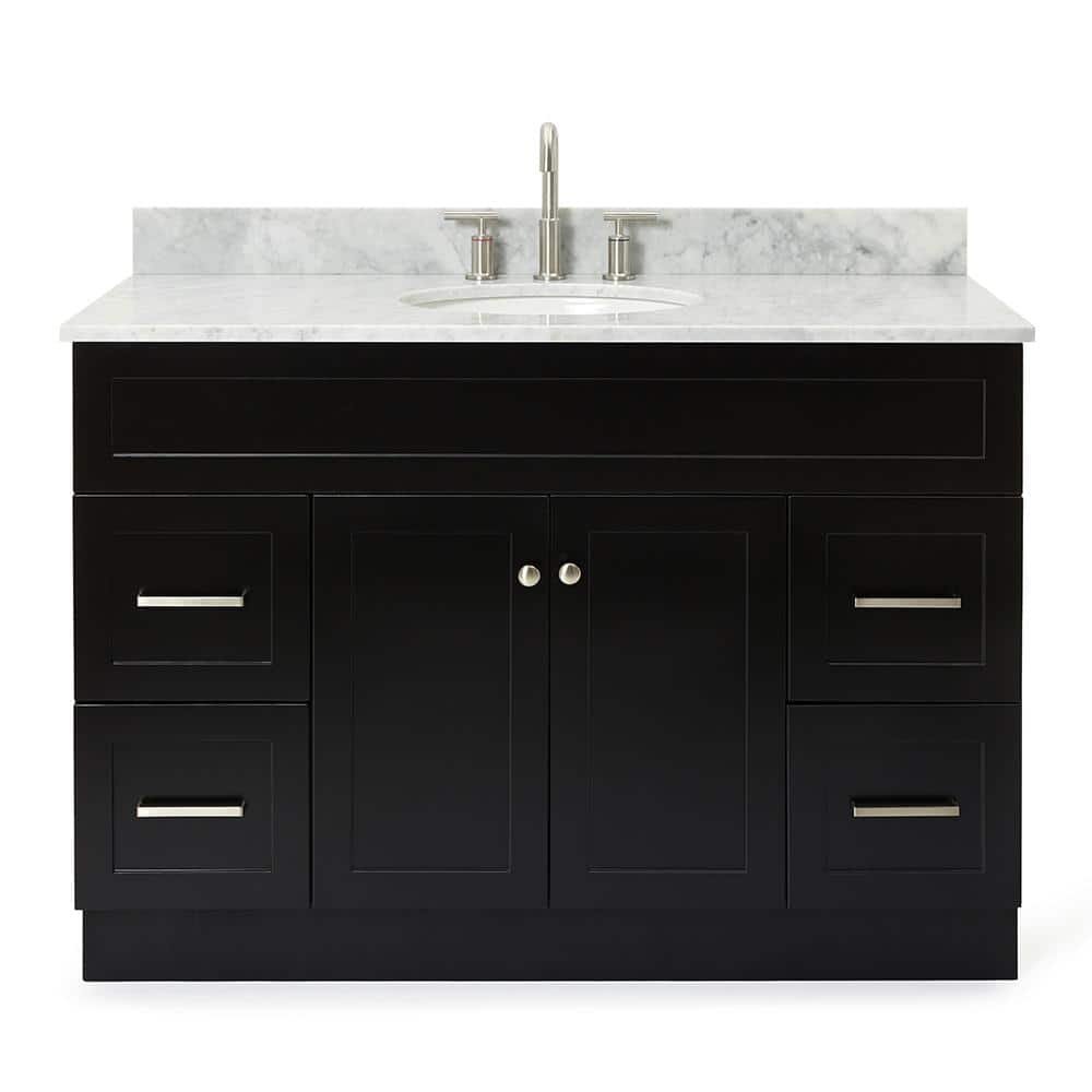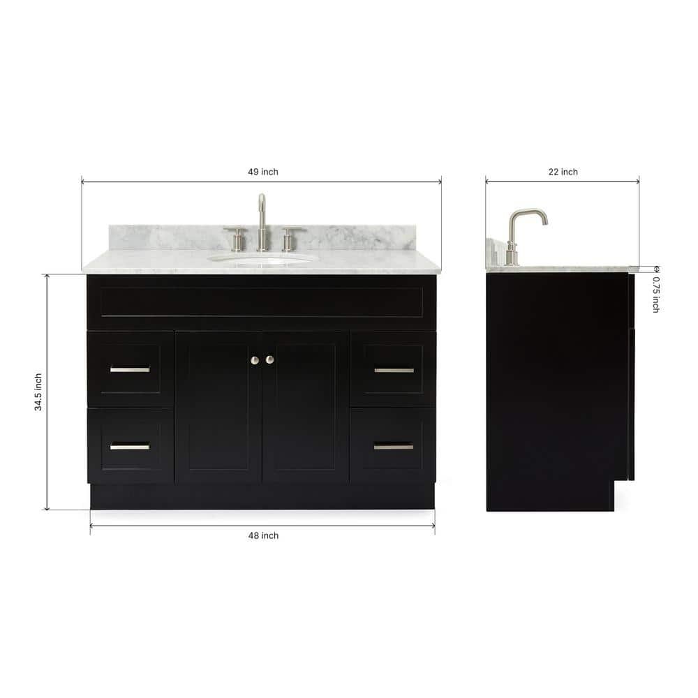 Hamlet 49 in. W x 22 in. D x 35.25 in. H Bath Vanity in Black with Carrara White Marble Vanity Top