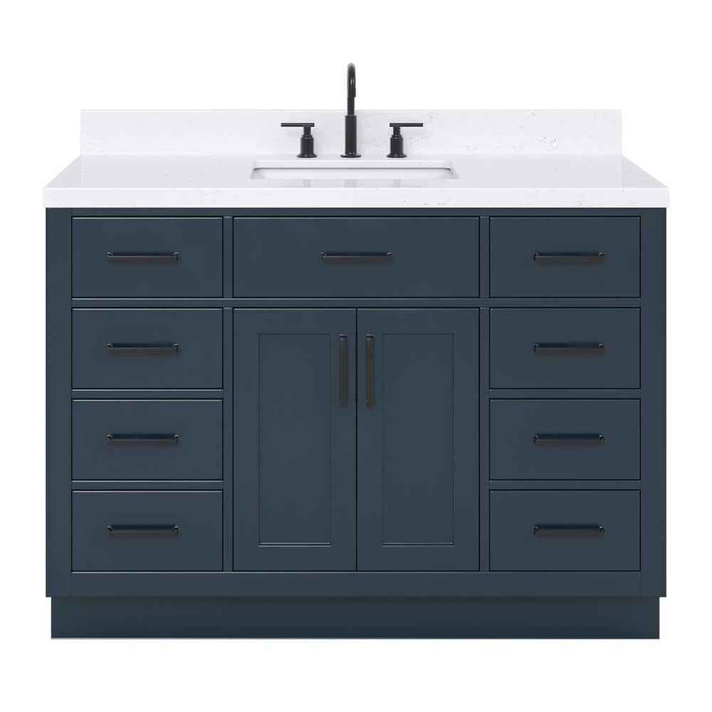 Hepburn 48 in. W x 22 in. D x 36 in. H Single Sink Freestanding Bath Vanity in Midnight Blue with Carrara Quartz Top