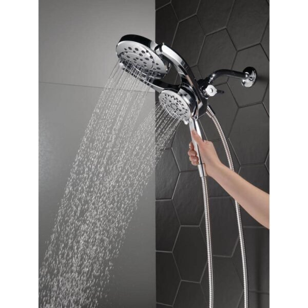 Designed to fit a standard shower arm, the HydroRain Two-in-One Shower Head with Hand Shower installs in minutes. Once installed, it provides you with a luxurious shower experience and complete control over your water with a pivoting rain can and the option to use the rain can on its own, the hand shower on its own, or both together. While other products may gather unsightly mineral build-up over time, Delta soft rubber Touch-Clean spray holes allow any mineral residue to simply be wiped away for an instantly refreshed look with no need for soaking or the aid of chemical cleaners. The pause setting gives you ample space for shaving, lathering and other shower tasks, without worrying about overspray or water waste. This spray setting helps you conserve water, so you can worry less about depleting your supply of hot water – and you help the environment too. Delta Water Sense labeled faucets, showers and toilets use at least 20% less water than the industry standard saving you money without compromising performance.