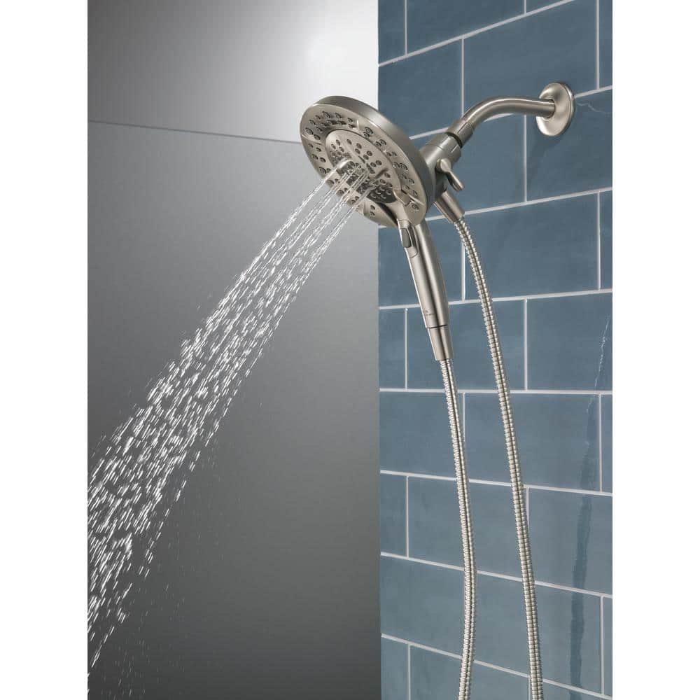The Delta In2ition 2-in-1 Shower features a detachable hand shower which can be used separately from or simultaneously with the shower head. This integrated dual-functionality gives you maximum flexibility without sacrificing warmth, as you can choose to have water streaming from the shower head only, the hand shower only or both the shower head and hand shower at once. While other products may gather unsightly mineral build-up over time, Delta soft rubber Touch-Clean spray holes allow any mineral residue to simply be wiped away for an instantly refreshed look – with no need for soaking or the aid of chemical cleaners. The pause setting gives you ample space for shaving, lathering and other shower tasks, without worrying about overspray or water waste. This spray setting helps you conserve water, so you can worry less about depleting your supply of hot water and you help the environment too. Delta WaterSense labeled faucets, showers and toilets use at least 20% less water than the industry standard-saving you money without compromising performance.