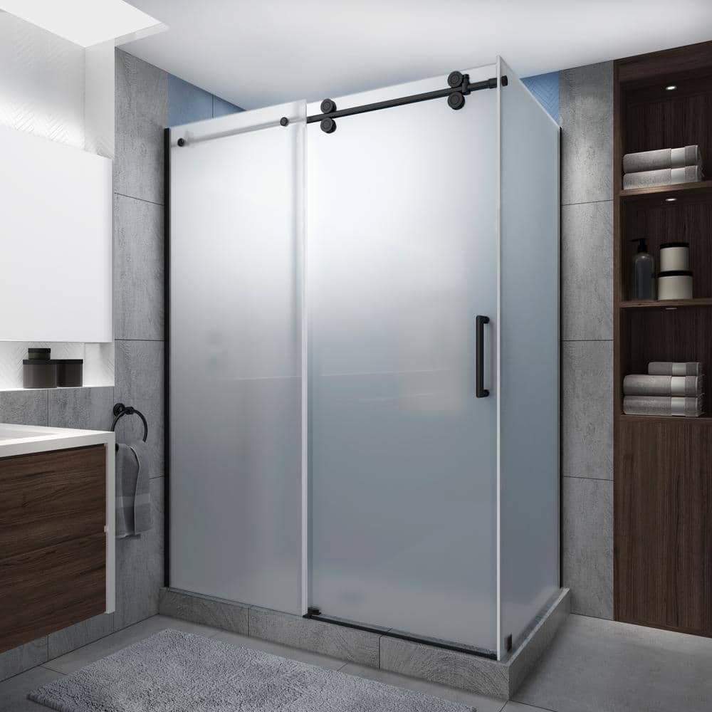 Langham XL 44-48 in. x38 in. x80 in. Sliding Frameless Shower Enclosure Ultra-Bright Frosted Glass in Oil Rubbed Bronze