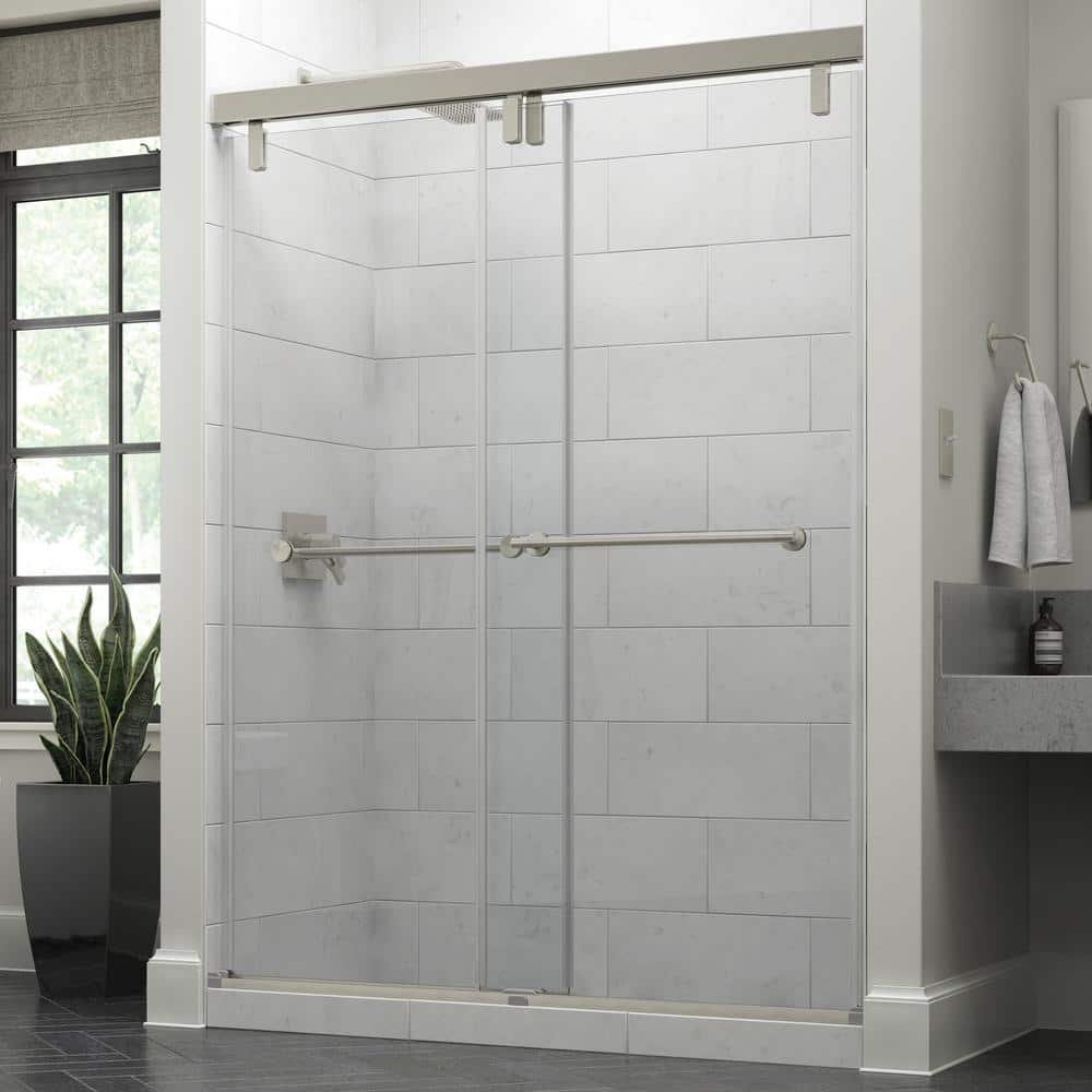 Lyndall Mod 50-1/8 to 58-1/2 in. W x 71-1/2 in. H Soft-Close Frameless Sliding Shower Door, Nickel, Clear Glass