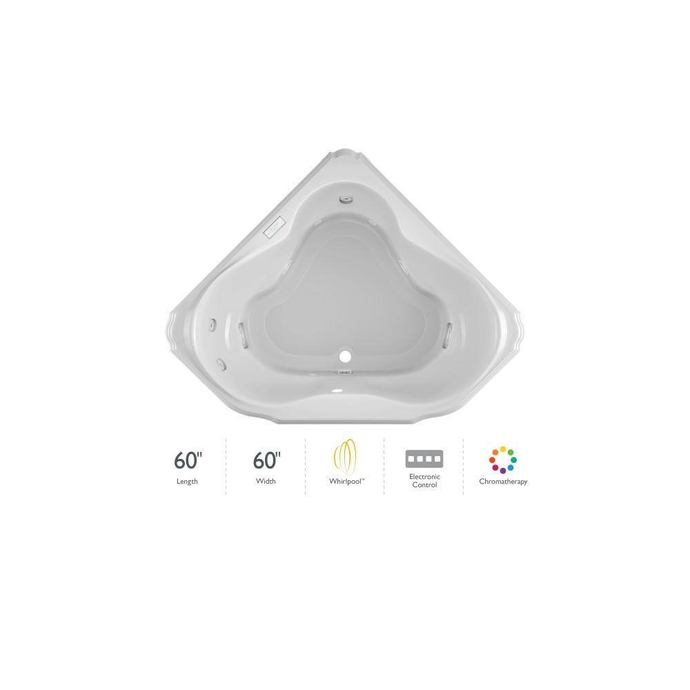 MARINEO 60 in. x 60 in. Neo Angle Whirlpool Bathtub with Center Drain in White