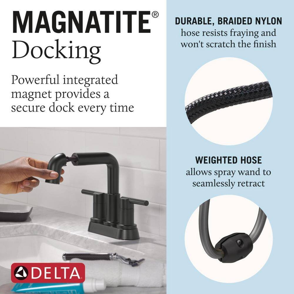 Nicoli 4 in. Centerset Double Handle Pull-Down Spout Bathroom Faucet in Matte Black
