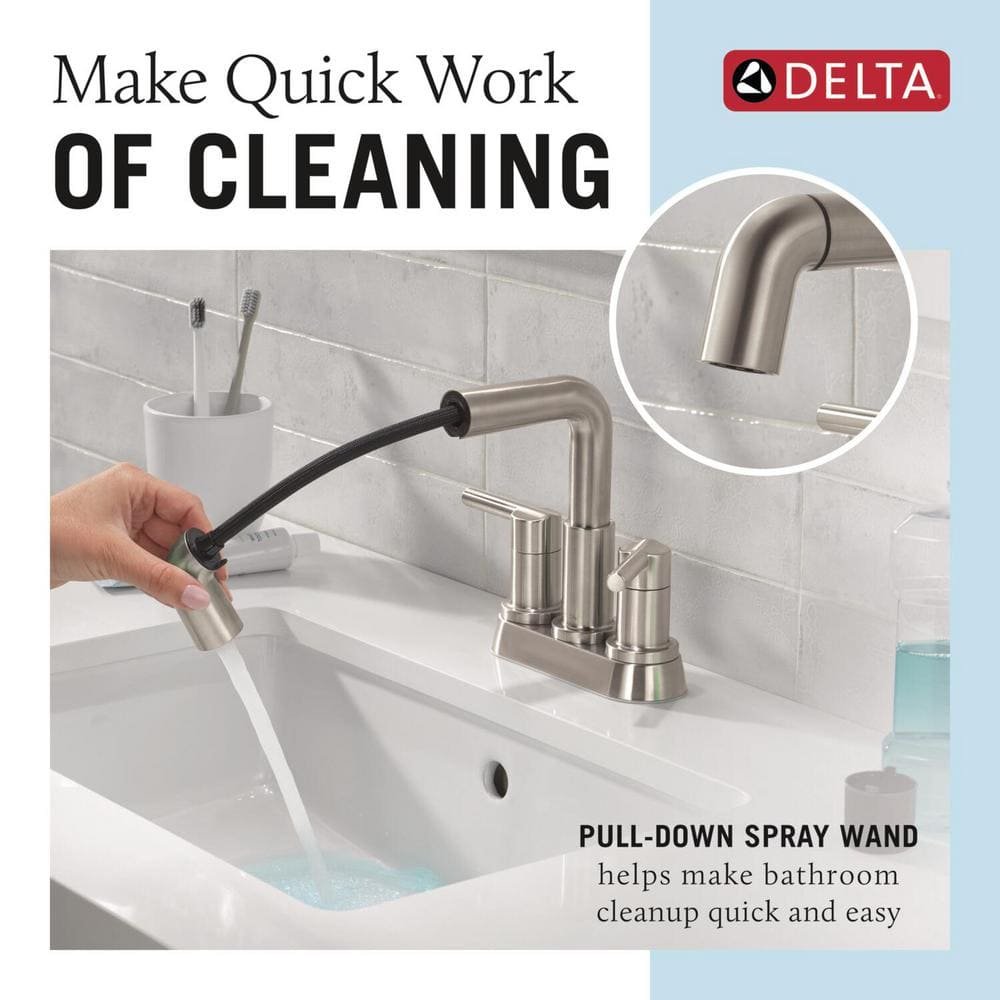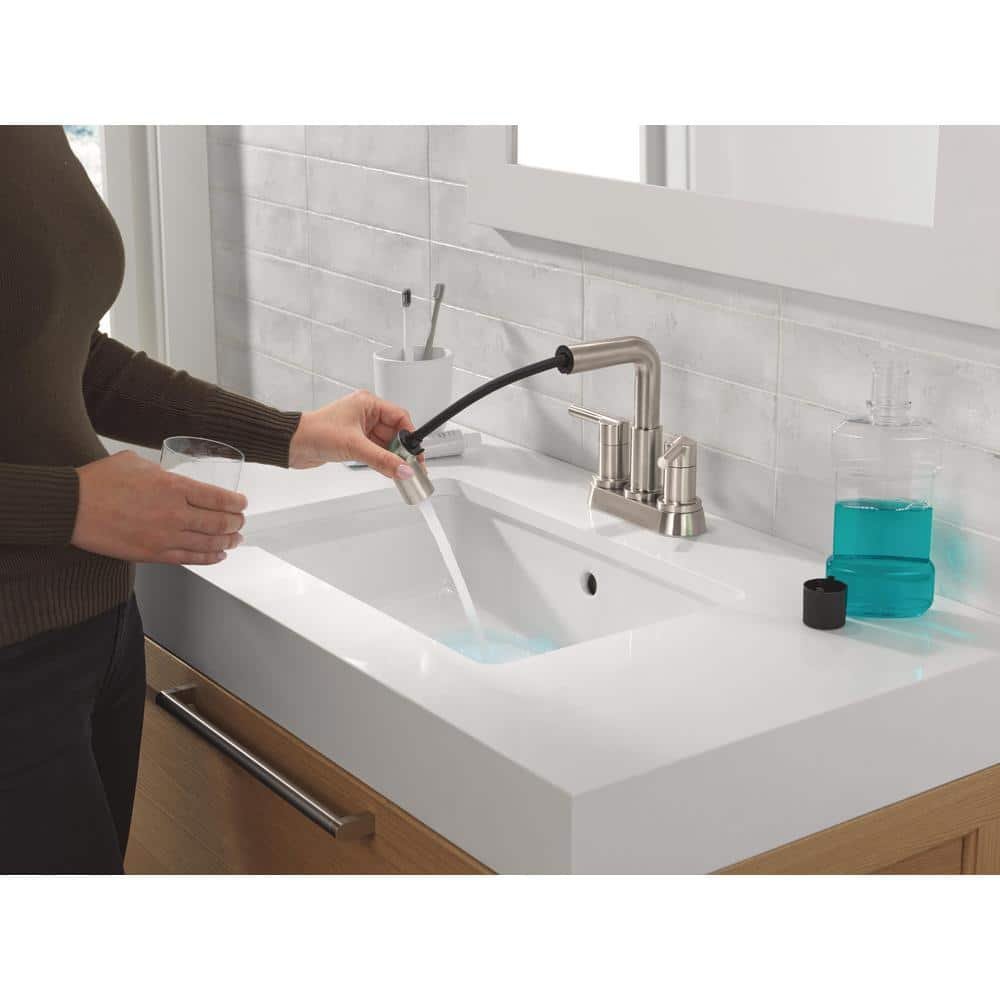 Nicoli 4 in. Centerset Double Handle Pull-Down Spout Bathroom Faucet in Stainless