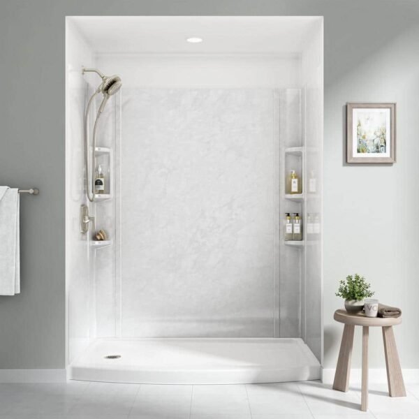Ovation 32 in. x 60 in. x 72 in. 5-Piece Glue-Up Alcove Shower Wall Set in White Marble