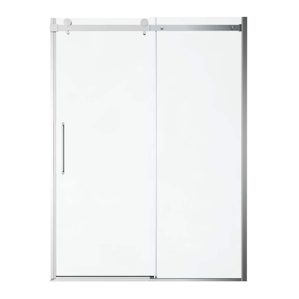 Passage 57.8 in. W x 72 in. H Sliding Frameless Shower Door in Silver with Clear Glass