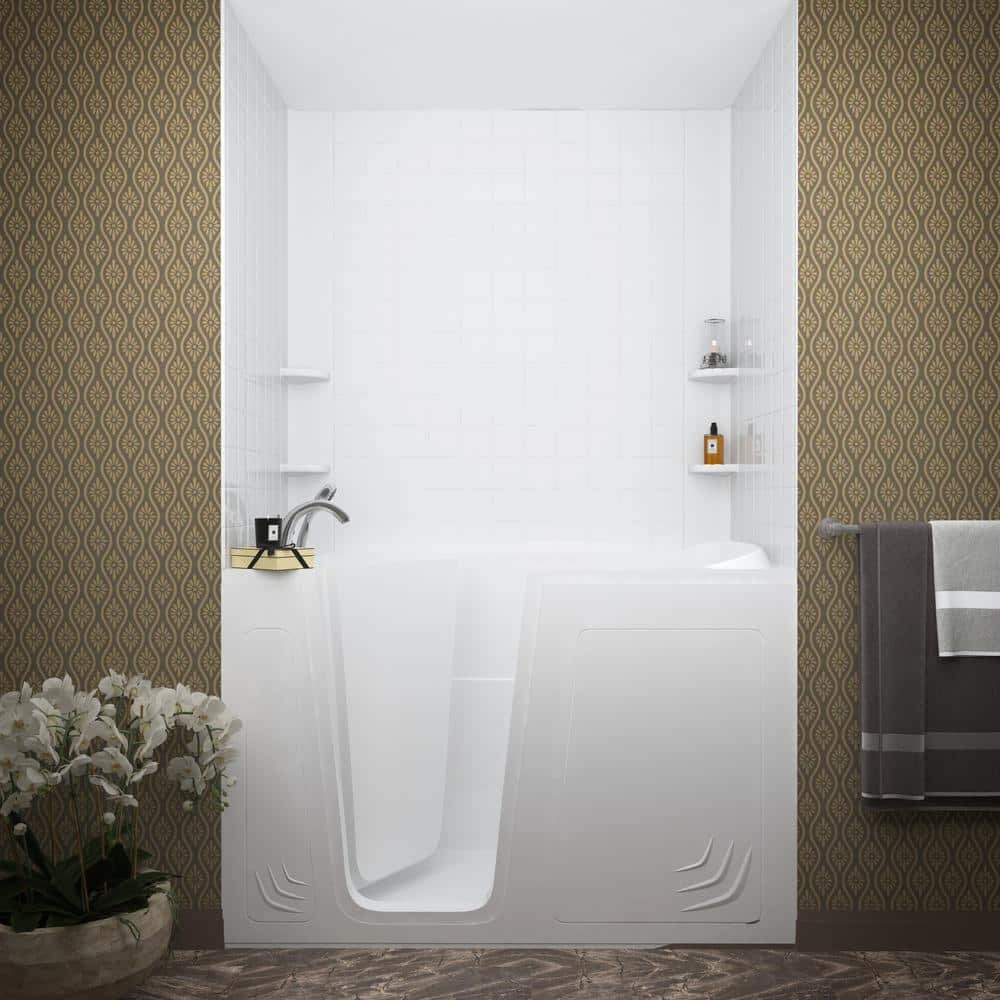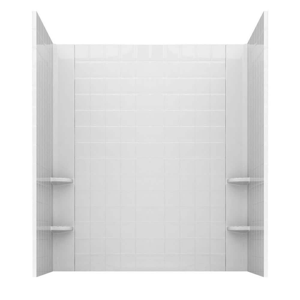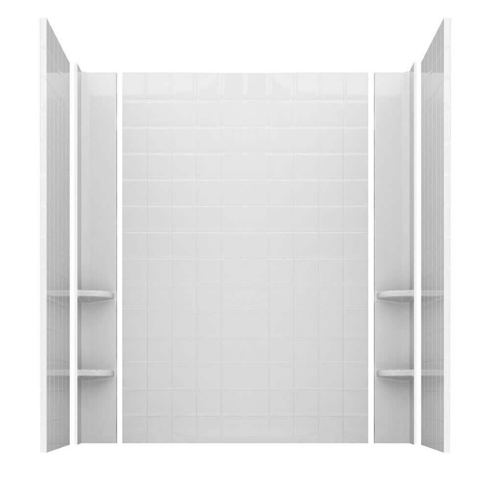 Rampart 60 in. x 60 in. 4-Piece Easy Up Adhesive Alcove Tub Surround with 4 in. Square Tiling in White